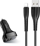 Usams King Tu series, ładowarka samochodowa C13 z podwójnym portem USB 2,1A i kablem lightning U35 1m.