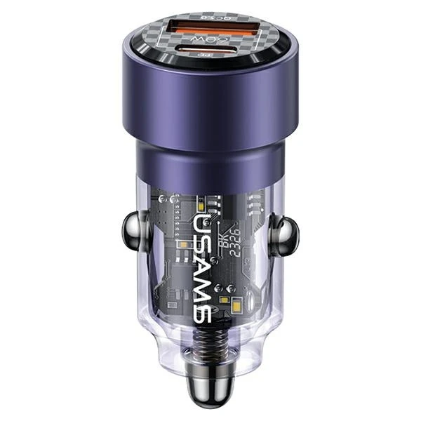 Ładowarka samochodowa USAMS C39 USB-A, USB-C 60W fioletowy/purple