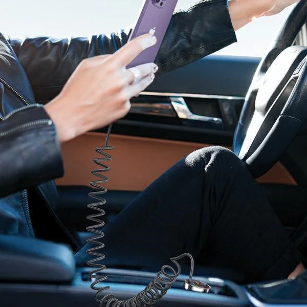 Akcesorium została dodatkowo wyposażono w kabel sprężynowy kompatybilny z technologią Fast Charging zakończony złączem USB typu C. Odpowiednia długość (1200cm) pozwala na komfortowe użytkowanie i przechowywanie.