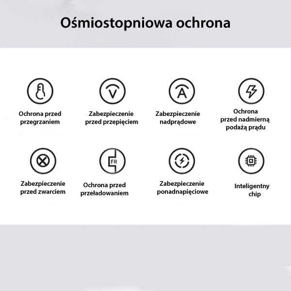 Urządzenie wyposażono w inteligentny chip, który charakteryzuje się niskim wydzielaniem ciepła i znakomitą wydajnością. Chip chroni przed przeładowaniem, zwarciem, zakłóceniami czy przegrzaniem, a także zabezpiecza nadprądowo ładowane urządzenia.