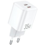 Ładowarka sieciowa AWEI PD65-EU GaN 35W 2xUSB-C biała/white