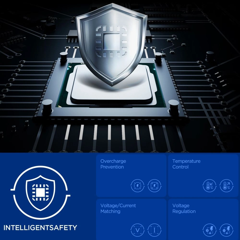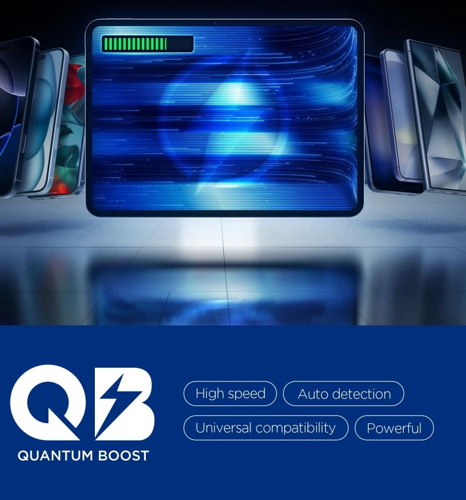 Technologia Quantum Boost automatycznie dopasowuje moc ładowania do podłączonego sprzętu, maksymalizując jego wydajność. Wbudowane funkcje Overcharge Prevention, Voltage Matching i Voltage Regulation chronią urządzenia przed przeładowaniem, nadmiernym napięciem i niestabilnym prądem, zapewniając bezpieczne i stabilne ładowanie w każdych warunkach.