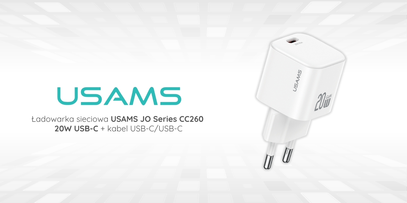 Ładowarka sieciowa USAMS JO Series CC260 20W USB-C + kabel USB-C / USB-C 1m biały