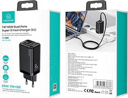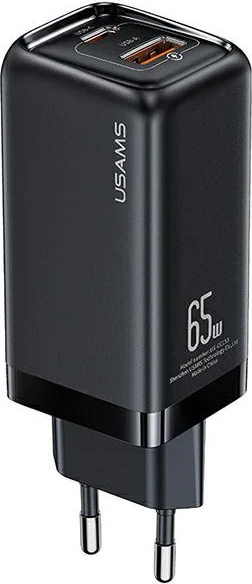 Ładowarka sieciowa USAMS T47 1xUSB-C+1xUSB 65W PD Fast Charging Super Si czarny/black CC153TC01