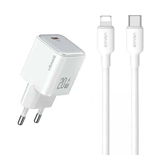 Ładowarka sieciowa USAMS US-CC183 USB-C 20W PD3.0 + kabel US-SJ610 USB-C / Lightning biały/white