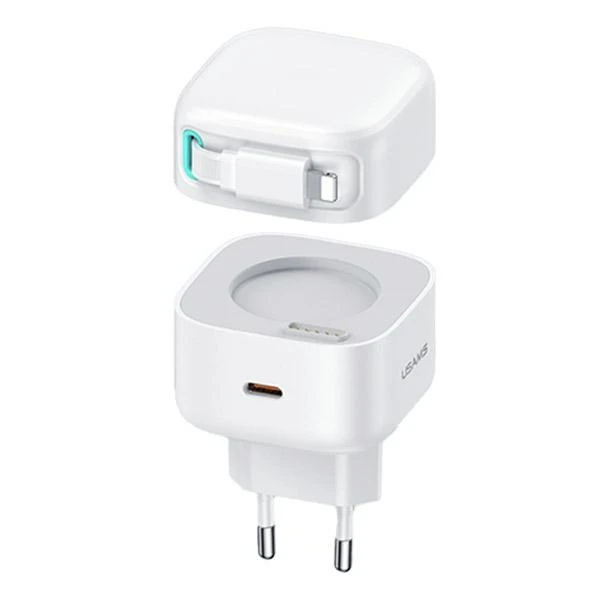 USAMS Ładowarka sieciowa 1xUSB-C ze zwijanym kablem Lighning PD+QC 35W Gan Fast Charging