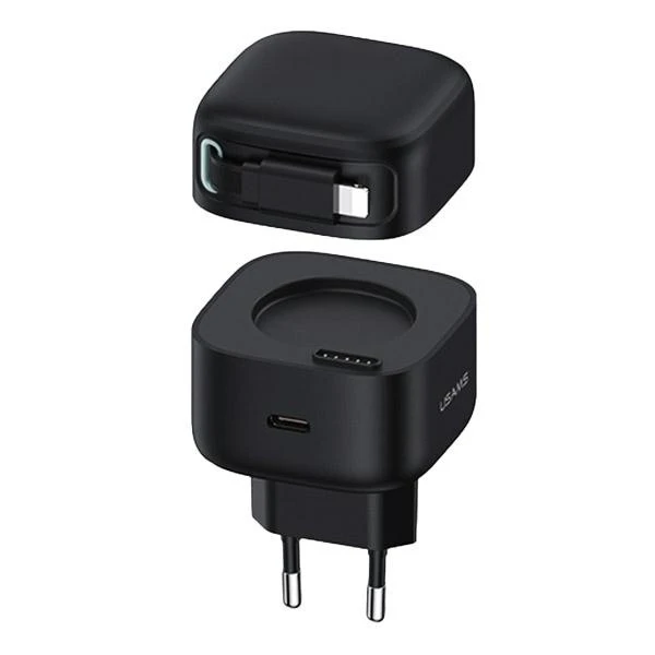 USAMS Ładowarka sieciowa 1xUSB-C ze zwijanym kablem Lighning PD+QC 35W Gan Fast Charging