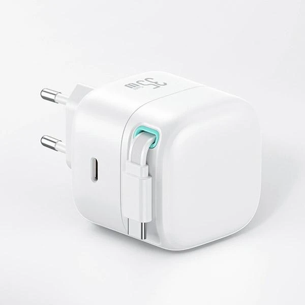 USAMS Ładowarka sieciowa 1xUSB-C ze zwijanym kablem USB-C PD+QC 35W Gan Fast Charging