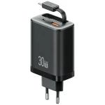 Ładowarka sieciowa USAMS Xiang Series CC296 30W USB-A, USB-C + kabel USB-C czarny