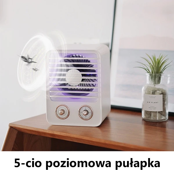 Innowacyjne rozwiązanie, które skutecznie wabi komary delikatnym światłem i bezwonnym wkładem w postaci tabletek. Specjalnie zaprojektowane skrzydła wiatraka zasysają owady do pojemniczka, z którego nie mogą się wydostać.