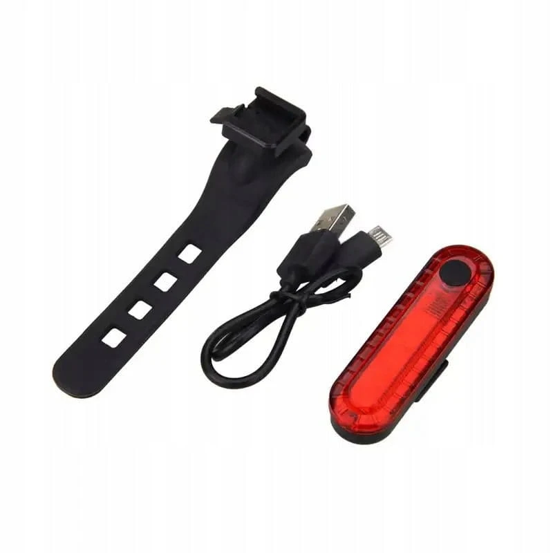 ◾️ lampka tylna LED ◾️ uchwyt na kierownicę ◾️ akumulator ◾️ kabel USB do ładowania ◾️ opaska montażowa