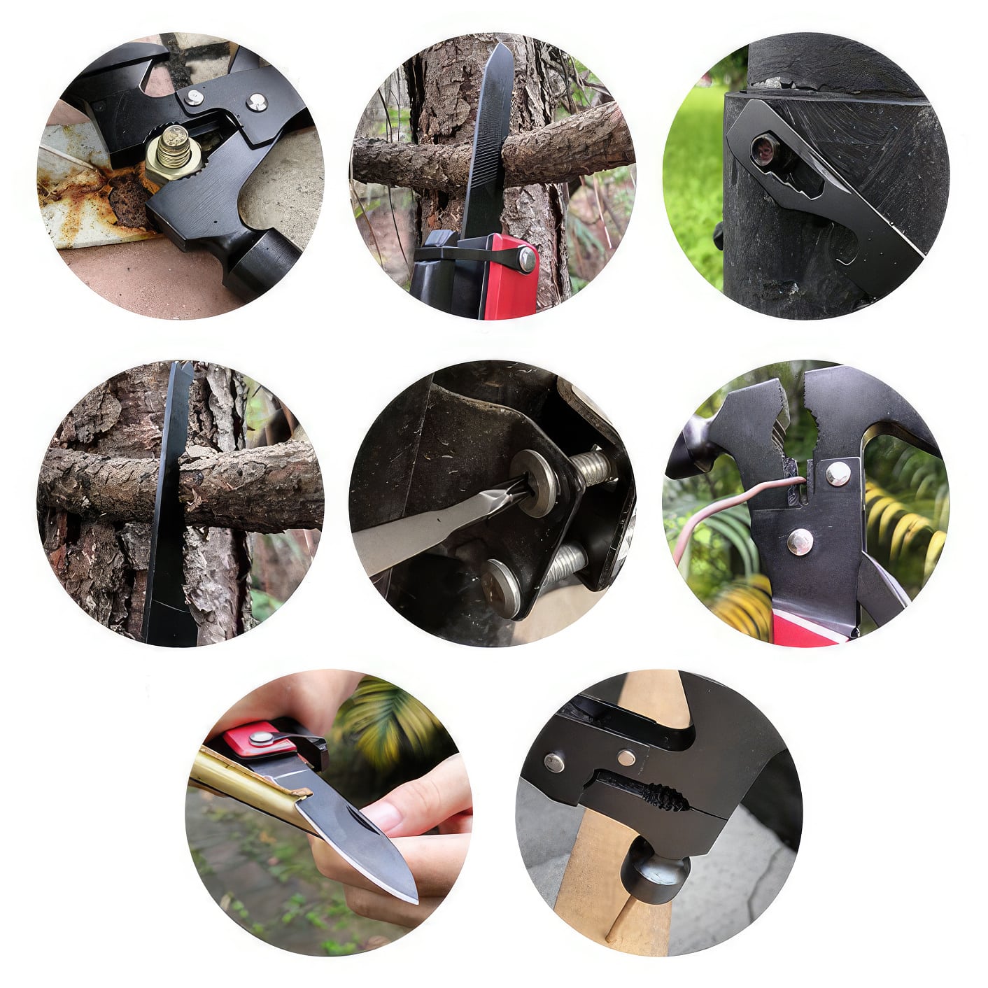 Wyjątkowe funkcje multitoola to między innymi młotek, który pozwala na wbijanie kołków czy wbijaków w trudno dostępne miejsca, szczypce zaciskowe, które są niezastąpione podczas napraw czy manipulacji różnego rodzaju materiałami, oraz obcęgi, które umożliwiają precyzyjne przycinanie drutów czy kabli.