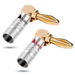 Wtyki bananowe, kątowe przeznaczone do zastosowania jako zakończenia kabli transmitujących analogowy sygnał audio.