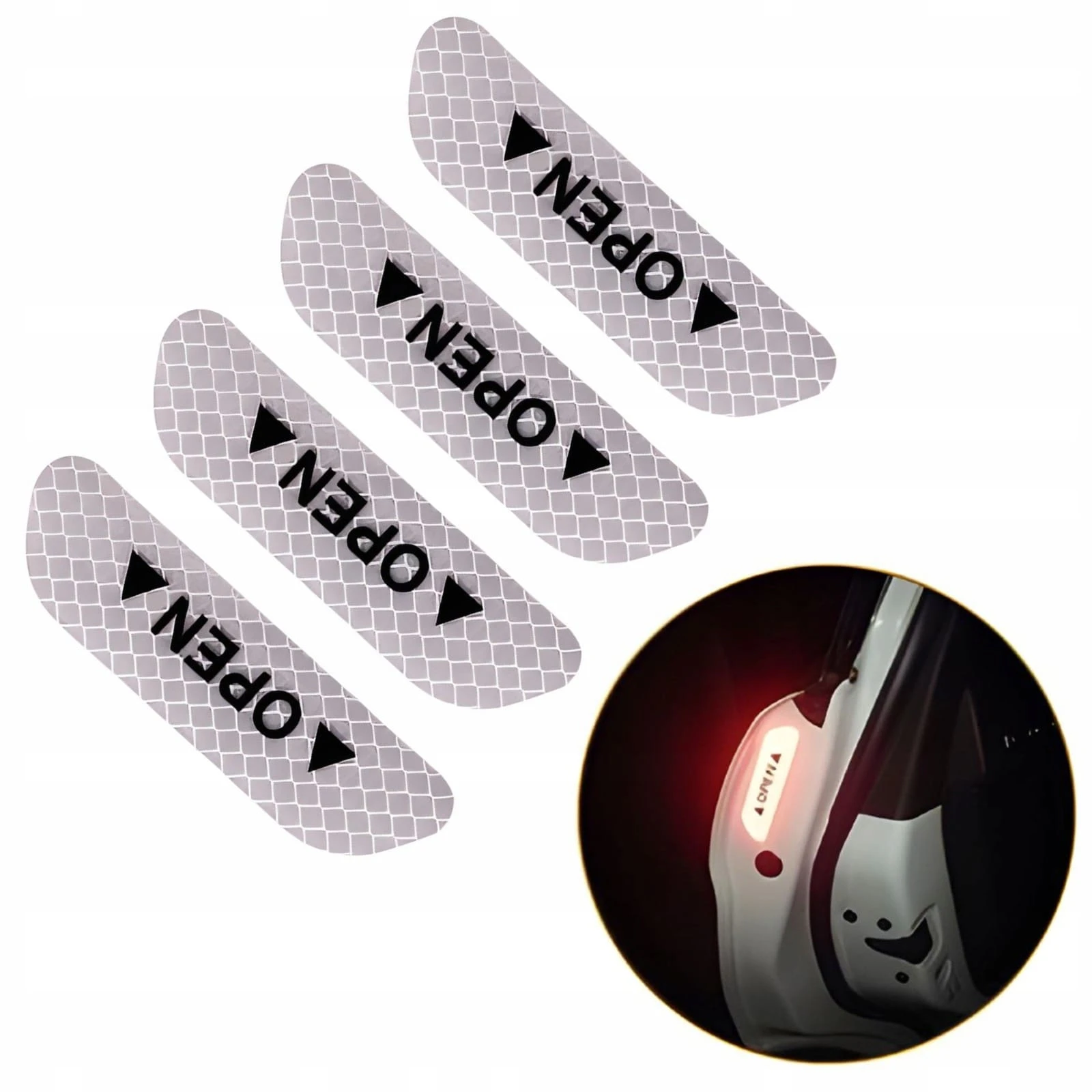 Odblask Ostrzegawczy "Open" na Drzwi Samochodu - 4szt. - Biały