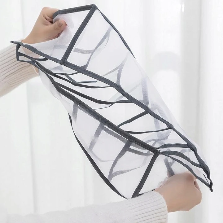 Organizer wykonany jest z wysokiej jakości nylonowej siatki, która zapewnia trwałość oraz odpowiednią wentylację przechowywanych rzeczy. Składana forma umożliwia łatwe schowanie organizera, gdy nie jest używany. Neutralny biały kolor pasuje do każdego wnętrza.