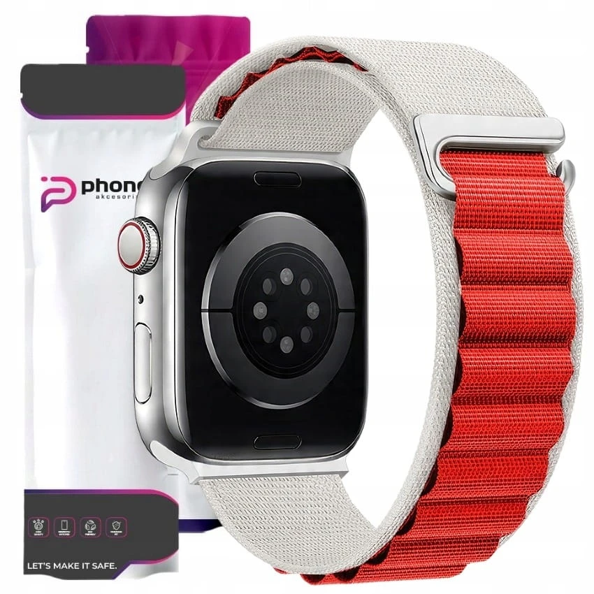 Pasek / Opaska Phoneo® z Metalową Zapinką do Apple Watch 42/44/45 mm - Biało-Czerwony