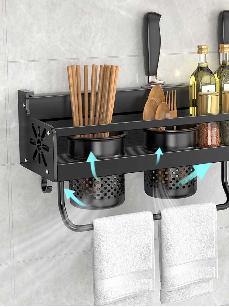 Półka kuchenna pozwala uporządkować najczęściej używane akcesoria i oszczędzić miejsce na blacie. Przemyślany układ elementów zapewnia szybki dostęp do noży, sztućców, przypraw oraz ściereczki. Solidna konstrukcja i praktyczne rozwiązania sprawiają, że organizer dobrze sprawdza się w codziennym użytkowaniu.
