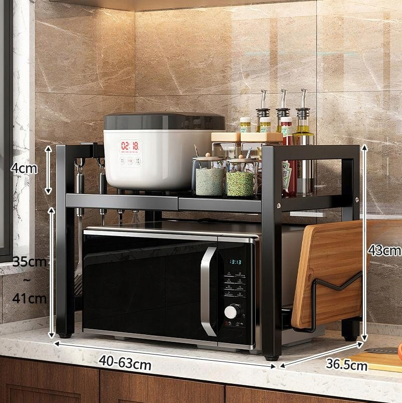 Półka Kuchenna nad Mikrofalówkę na Blat z Uchwytem na Deskę - Metalowa - Czarna
