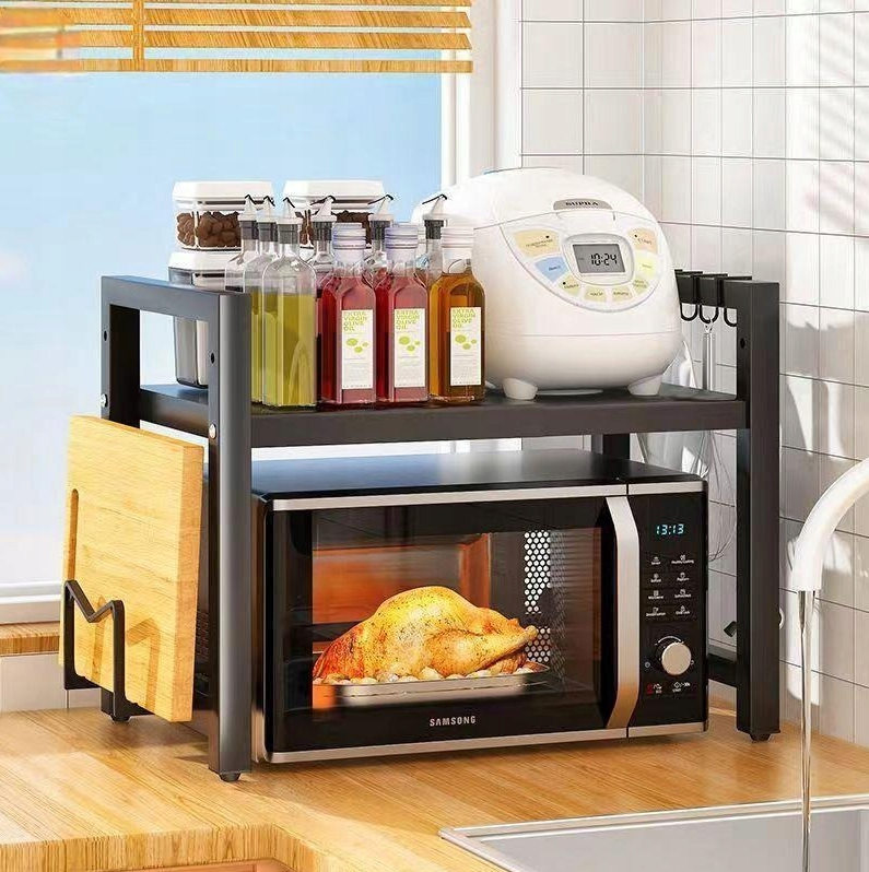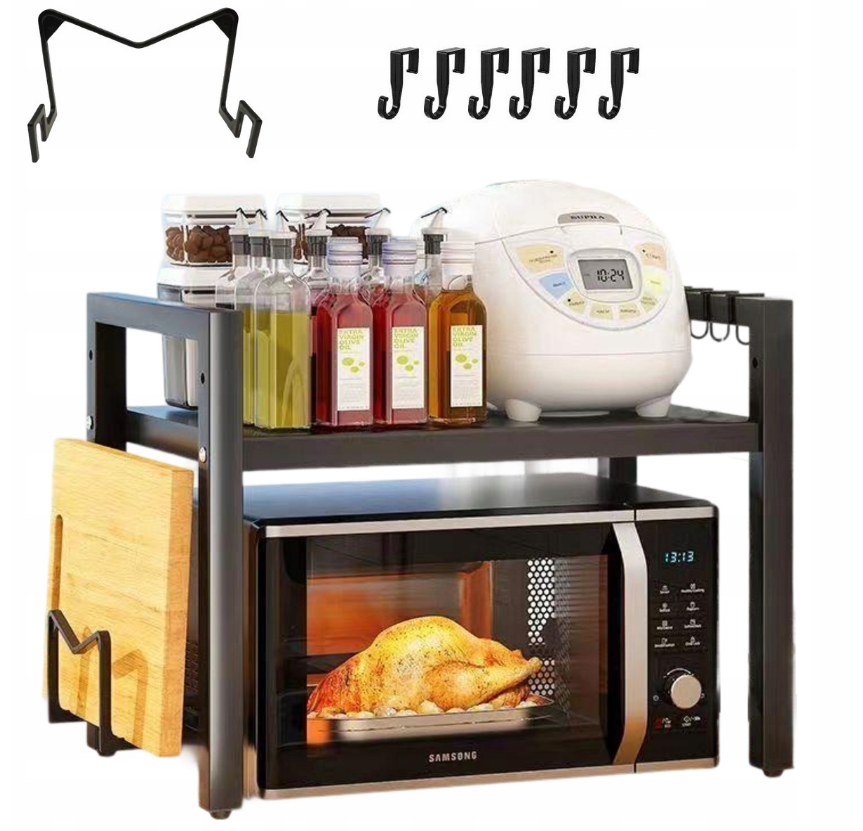 - Stojak nad mikrofalówkę pozwalający stworzyć dodatkową przestrzeń do przechowywania w kuchni