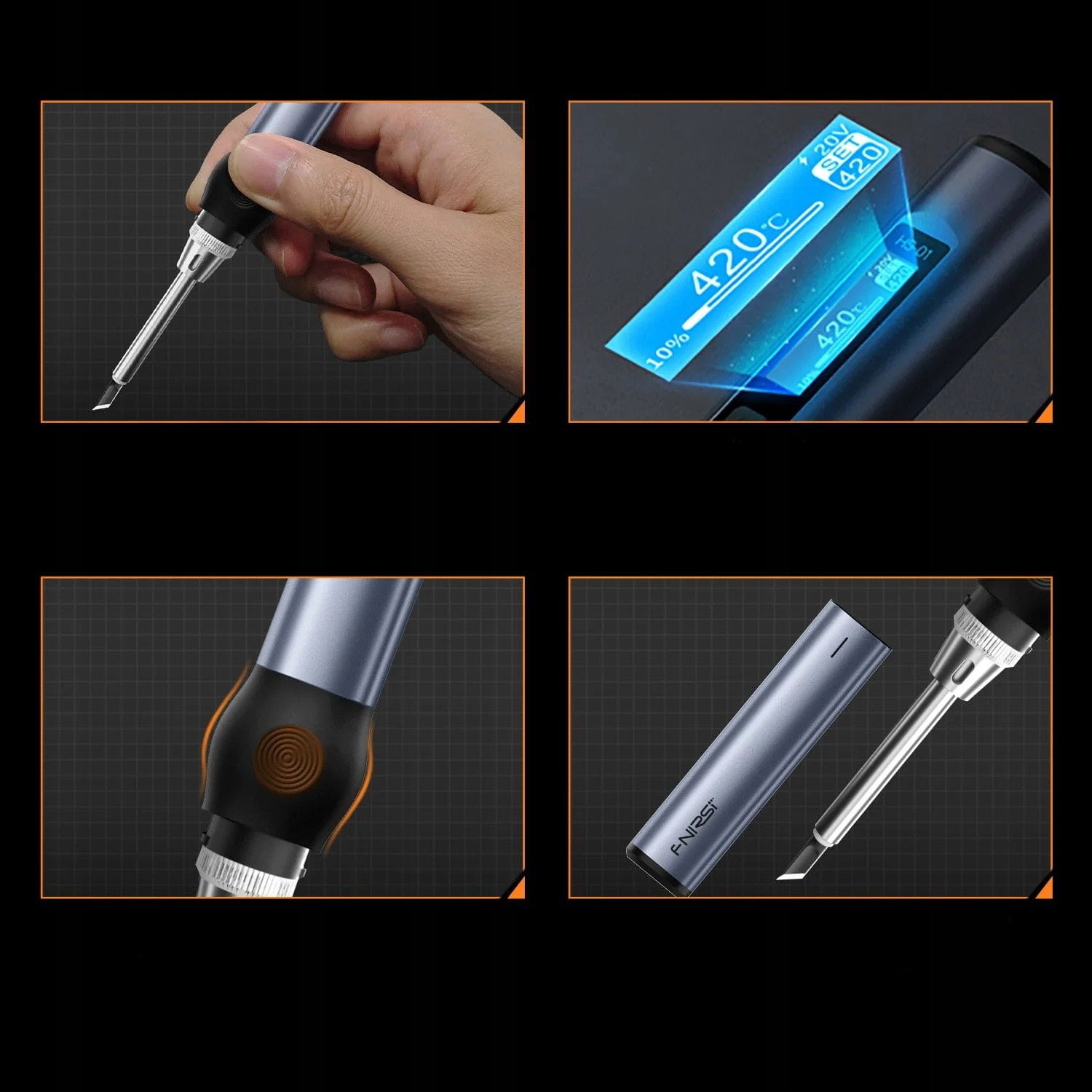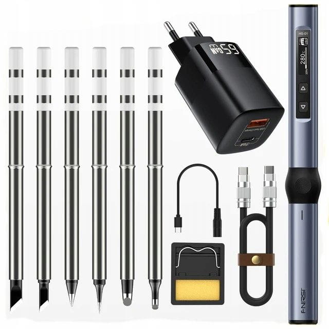 Precyzyjna Lutownica OLED Fnirsi 96W + Zestaw 6 Grotów + Zasilacz - Niebieska