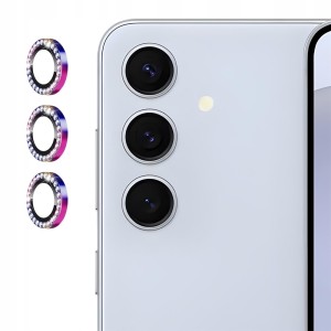 Ring z Cyrkoniami ze Szkłem Hartowanym na Obiektyw Aparatu - Samsung Galaxy S25 - Tęczowy