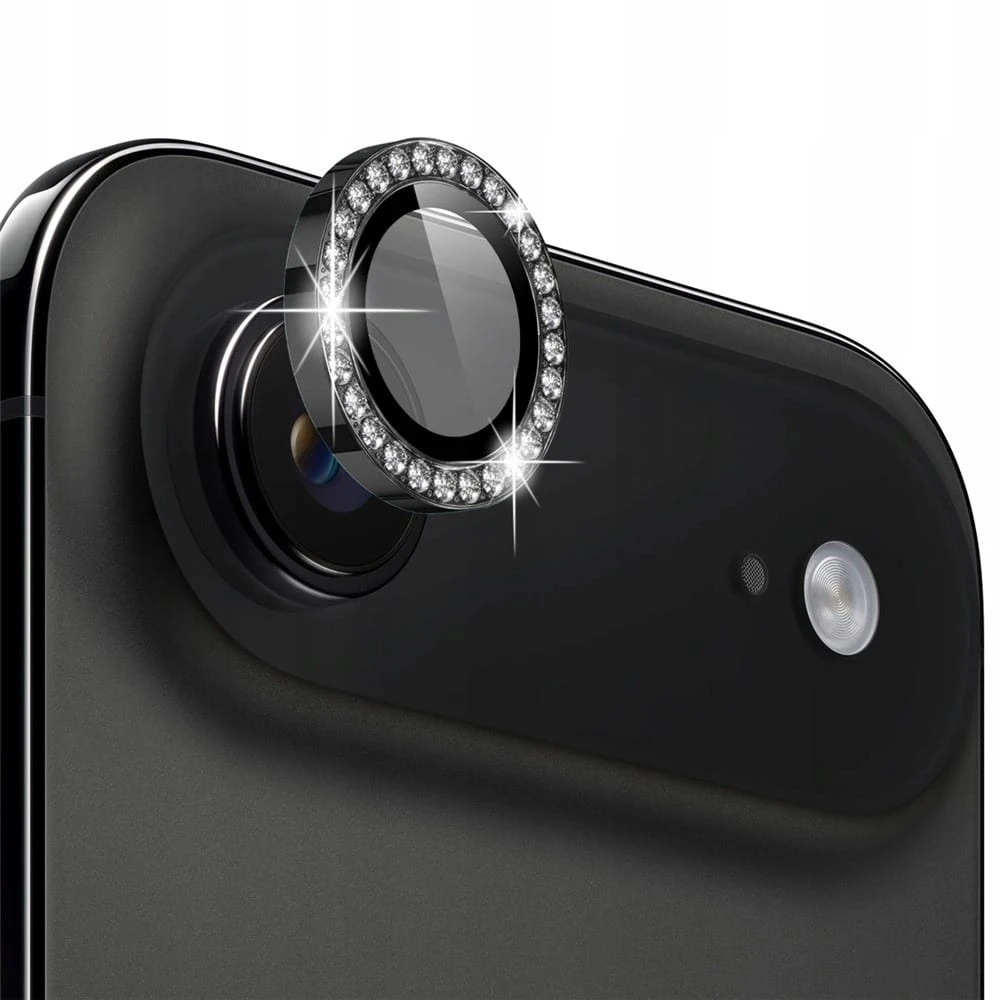 Ring z Cyrkoniami ze Szkłem Hartowanym na Obiektyw Aparatu - iPhone Air - Czarny