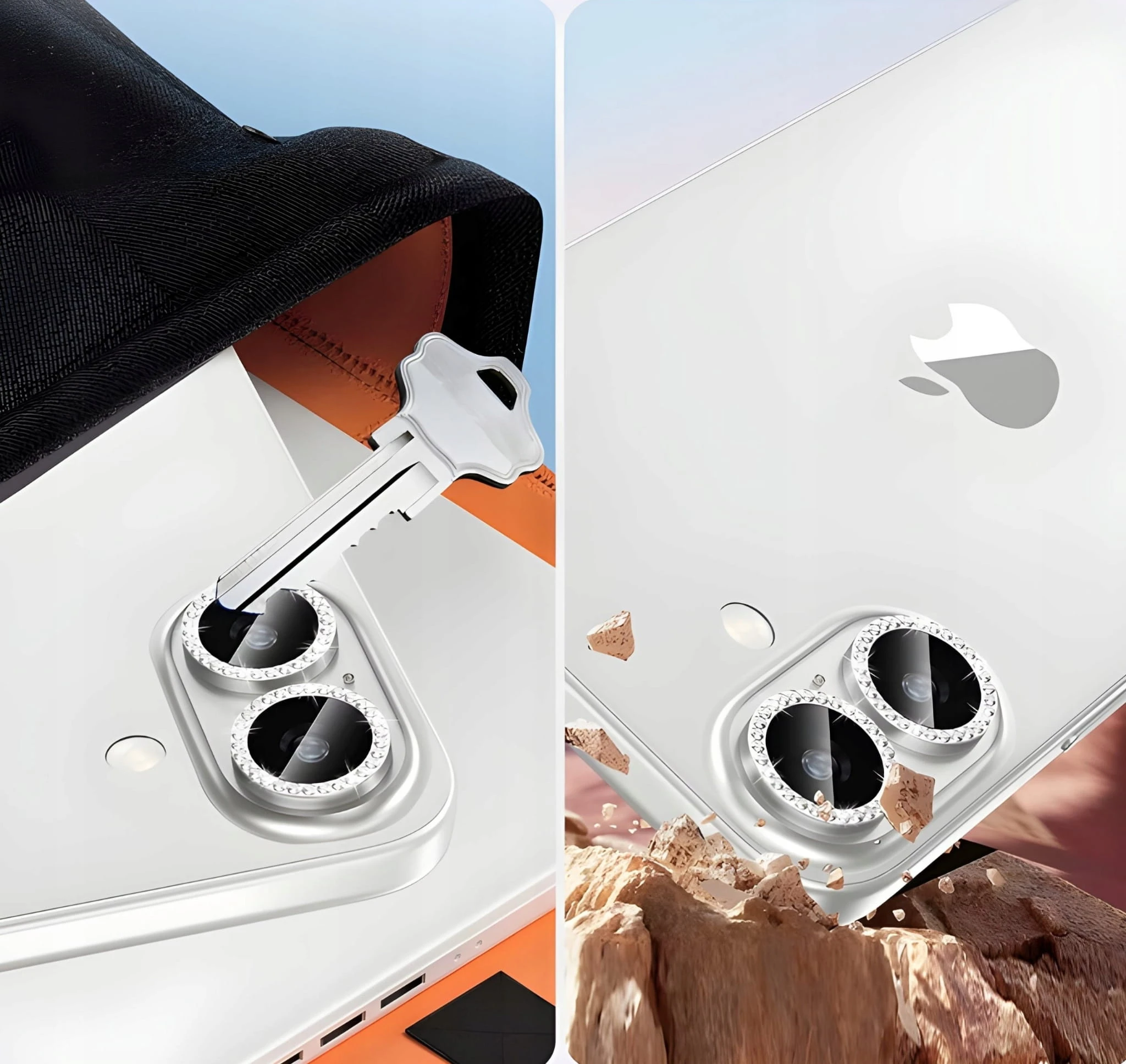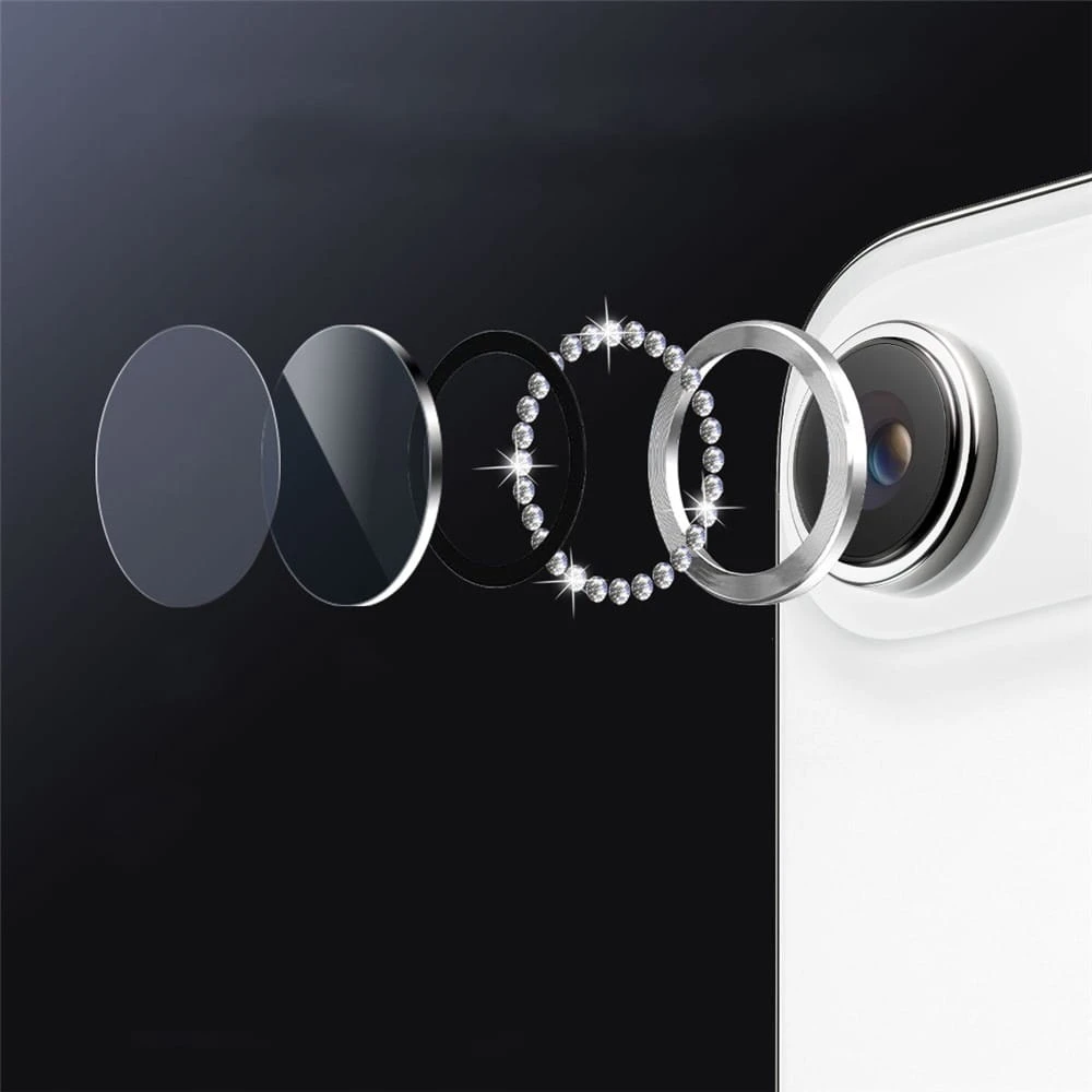Ring z Cyrkoniami ze Szkłem Hartowanym na Obiektyw Aparatu - iPhone Air - Srebrny