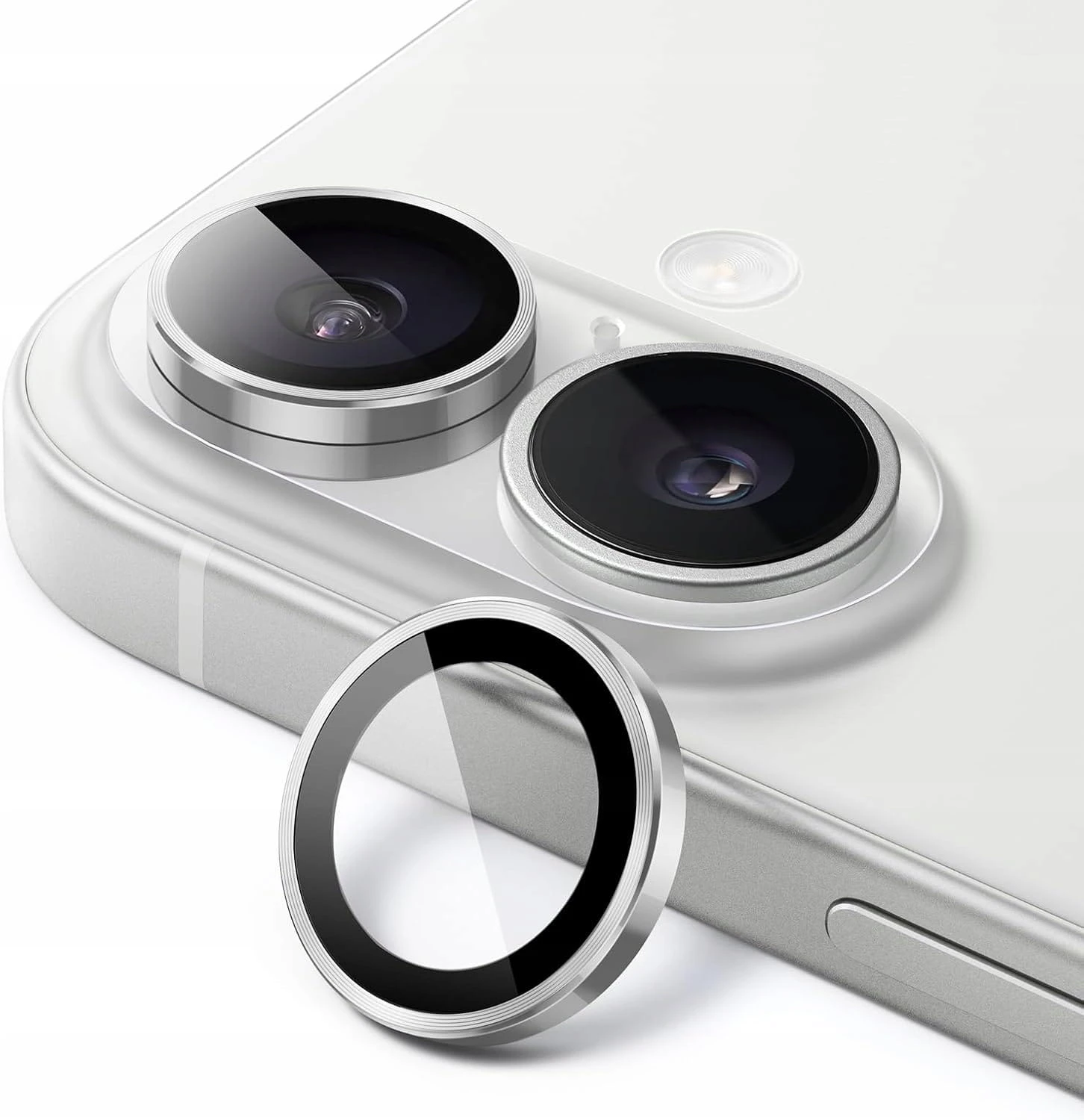Ring ze Szkłem Hartowanym na Obiektyw Aparatu - iPhone 16 Plus - Srebrny