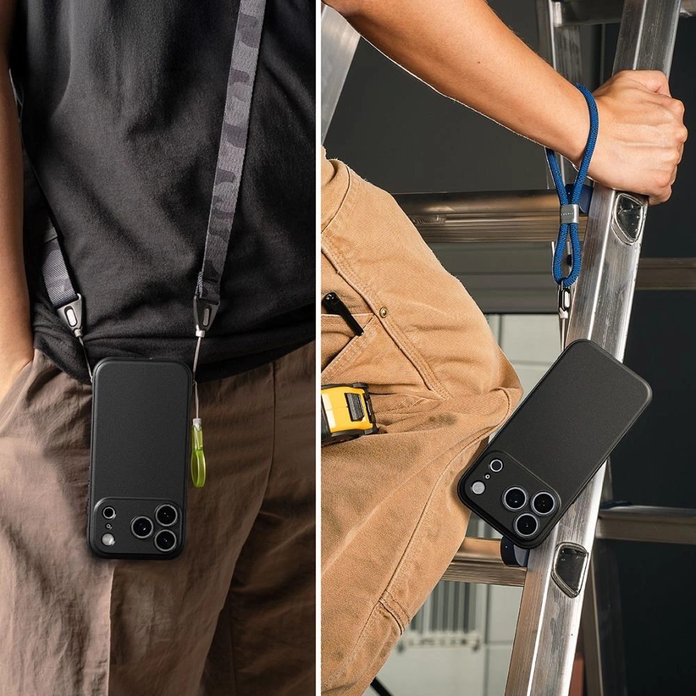 The Onyx Magnetic Magsafe case from Ringke is made of soft and durable thermoplastic material, additionally reinforced at the edges to protect the device as best as possible. The slightly raised form of the case around the camera and screen protects it from scratches, lifting the phone just above the flat surface. It features button covers, cutouts for ports, and a strap.