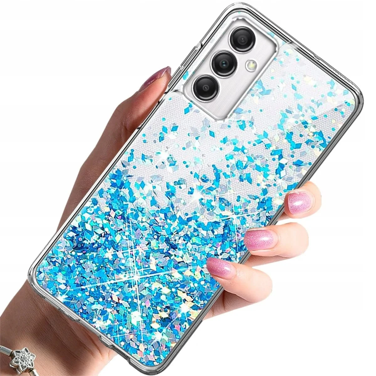 Przezroczyste etui z pływającym brokatem będzie wyglądało oszałamiająco na Twoim telefonie przy zachowaniu maksymalnej ochrony. Po założeniu etui chroni tył i boki!