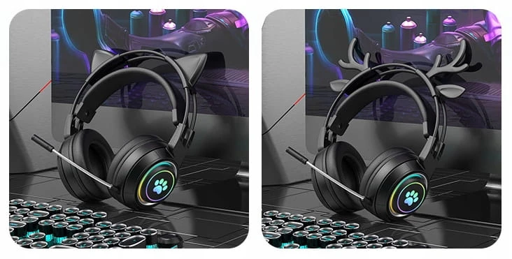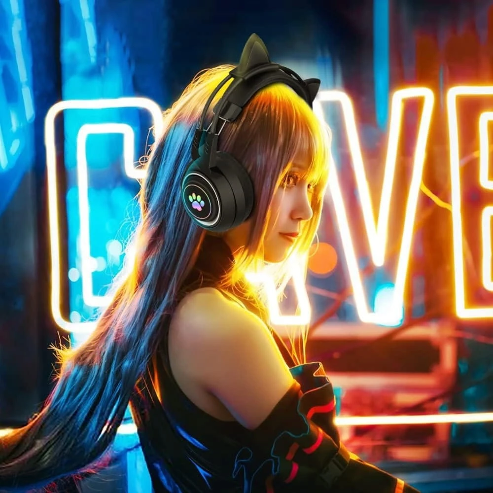 Słuchawki Gamingowe Bluetooth - Kocie Uszy - Czarne