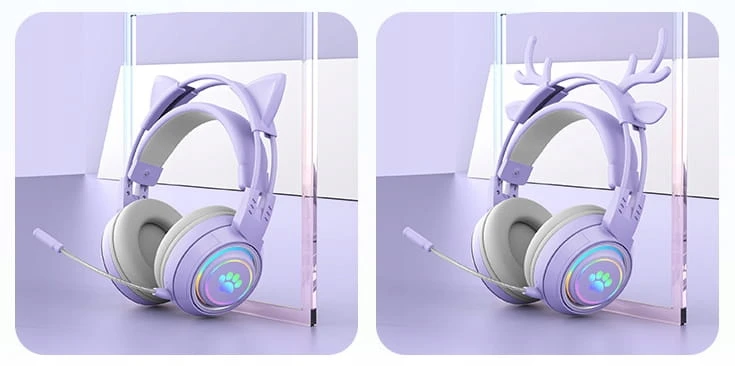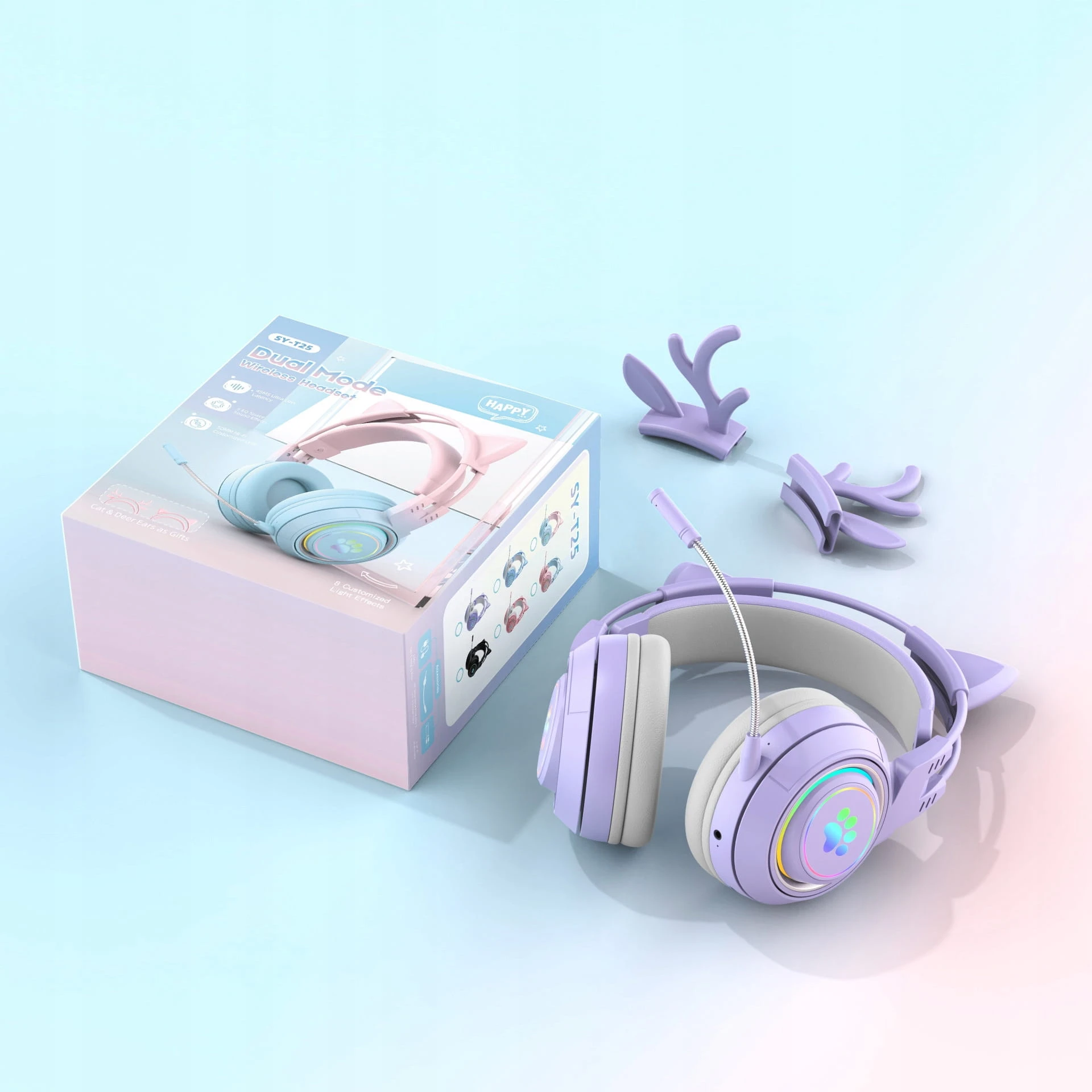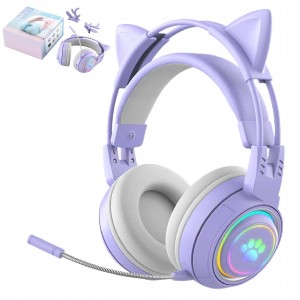 Słuchawki Gamingowe Bluetooth - Kocie Uszy - Fioletowe