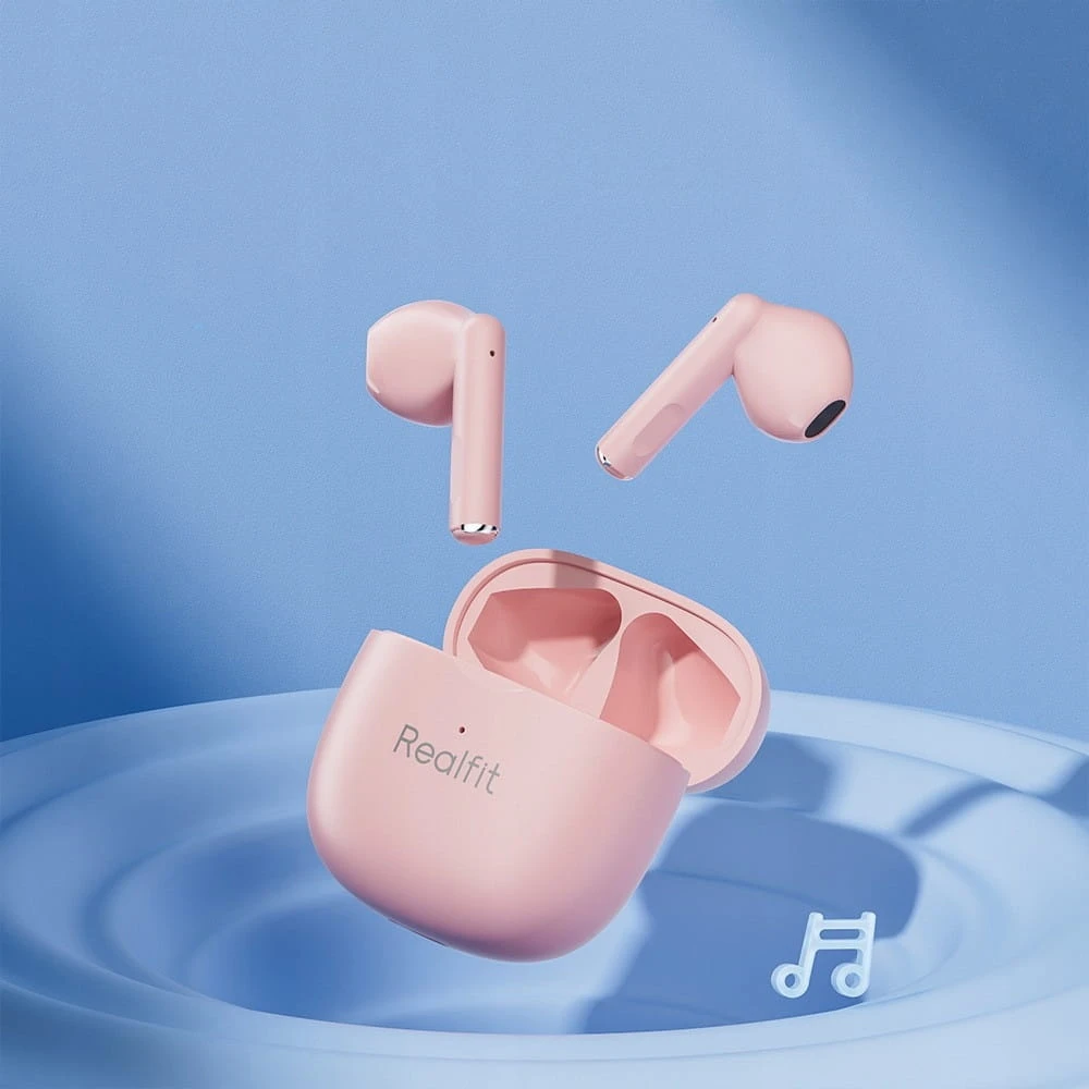 Słuchawki Premium Bezprzewodowe Douszne - Realfit F1 - Różowe
