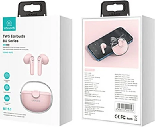 Słuchawki TWS USAMS BU series Bluetooth 5.1 różowy/pink BHUBU04