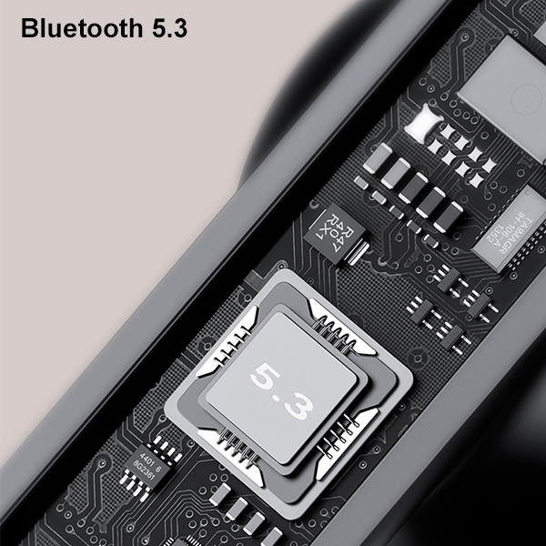 Słuchawki douszne wykorzystujące technologie Bluetooth 5.3. Zaawansowana technologia gwarantuje szybsze połączenie niż w przypadku BT 5.2, silniej przeciwdziała zakłóceniom oraz daje płynny dźwięk. Słuchawki łączą się z urządzeniem na dystansie sięgającym nawet 10m.