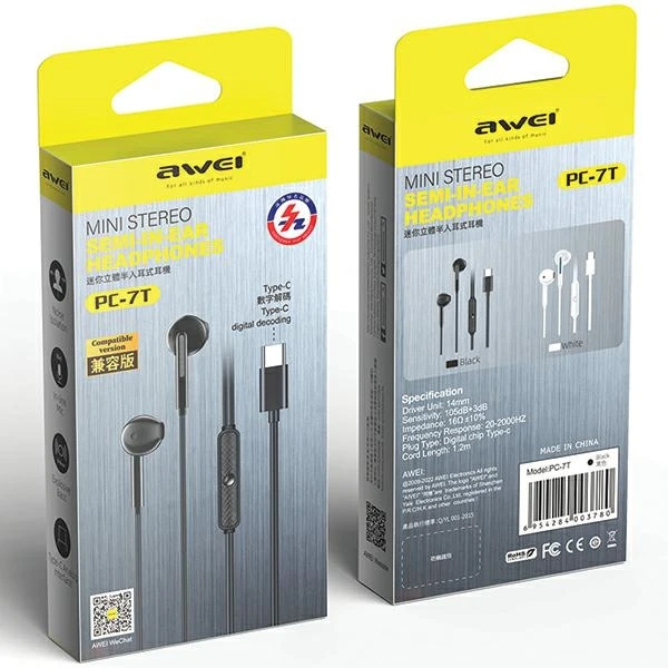Słuchawki douszne stereo Awei PC-7T to połączenie doskonałego brzmienia, klasycznego wzornictwa i precyzji wykonania. Ich klasyczna stylistyka sprawia, że są one produktem ponadczasowym i uniwersalnym, doskonale wpisującym się w różnorodne gusta użytkowników.