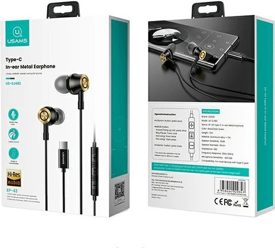 Słuchawki USAMS EP-43 w aluminiowej obudowie. Ergonomiczna konstrukcja sprawia, że są wygodne i komfortowe w noszeniu. Wbudowany pilot z mikrofonem ułatwia sterowanie bez potrzeby korzystania z telefonu. Designerska konstrukcja sprawia, że słuchawki zachwycają swoim unikalnym wyglądem.