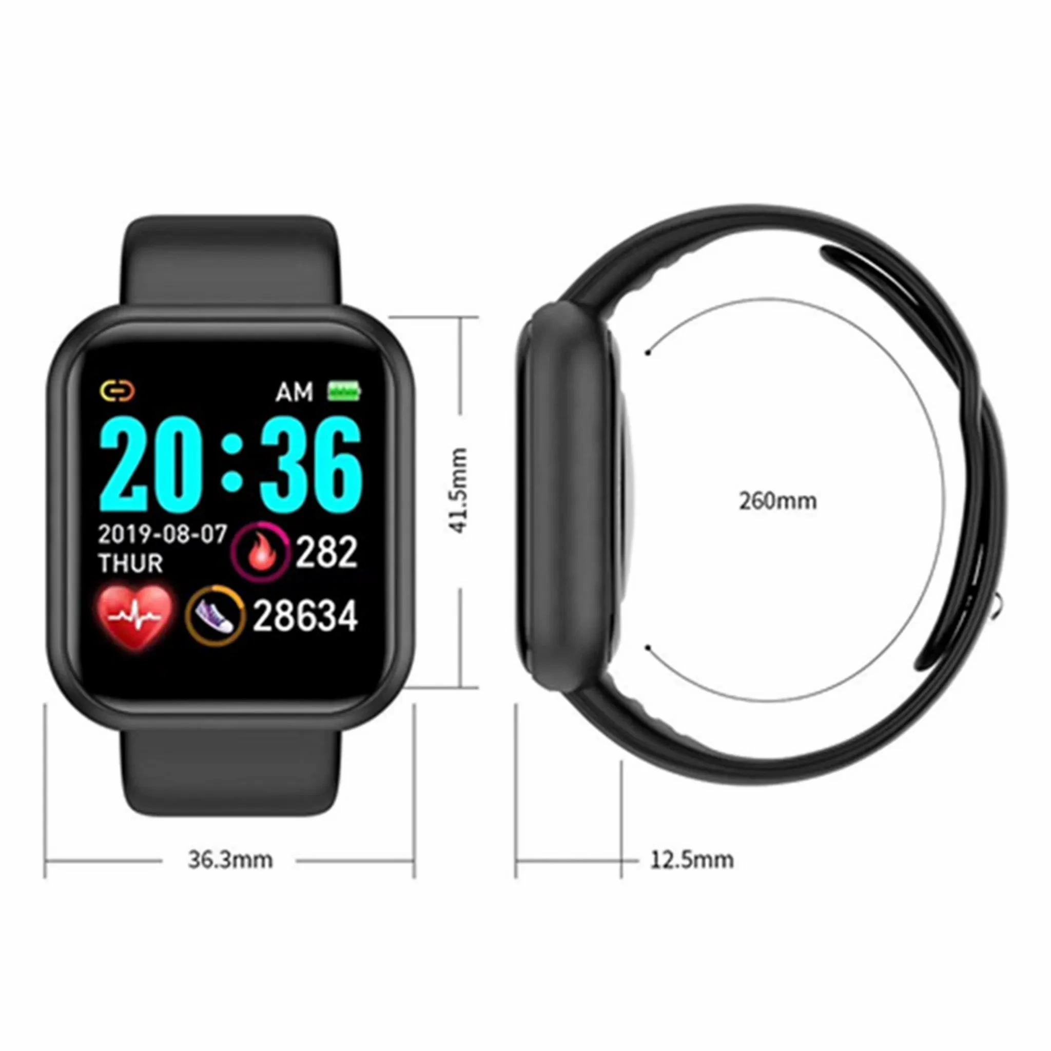 Smart Bracelet, Smartband - Opaska Sportowa - D20 - Czarny