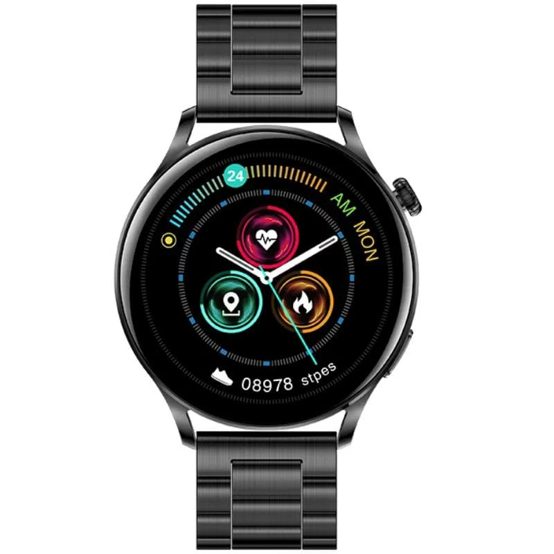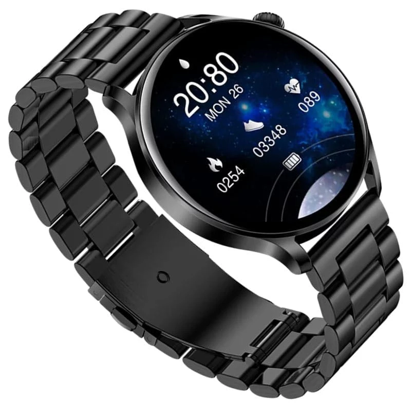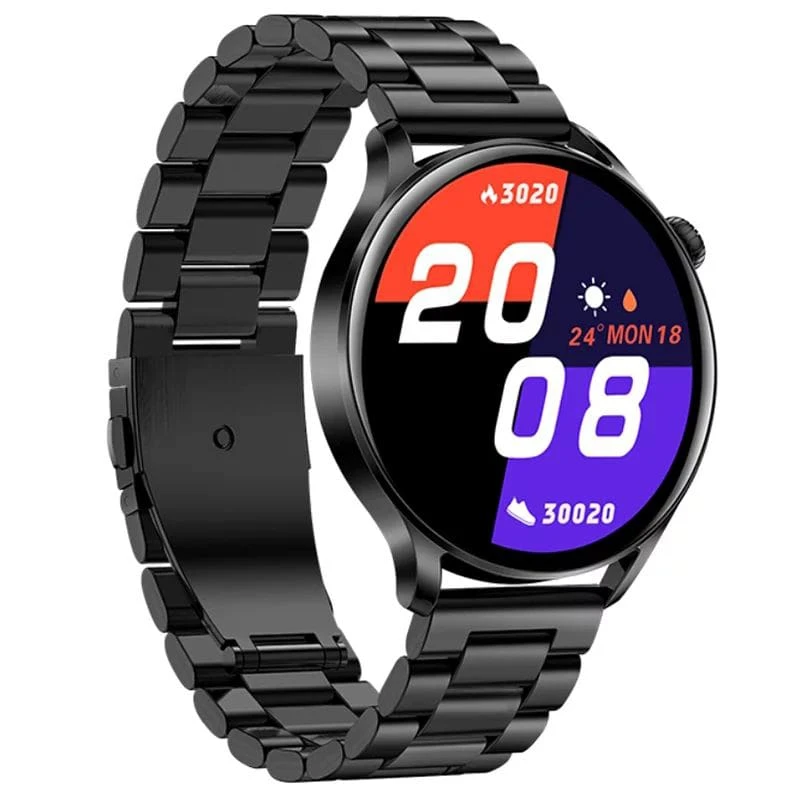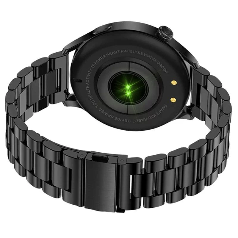 Smartwatch posiada solidną, stalową bransoletę w kolorze czarnym!