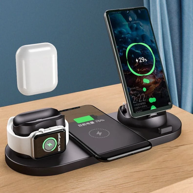 Stacja Ładująca Bezprzewodowa do Apple (6w1) - Czarny