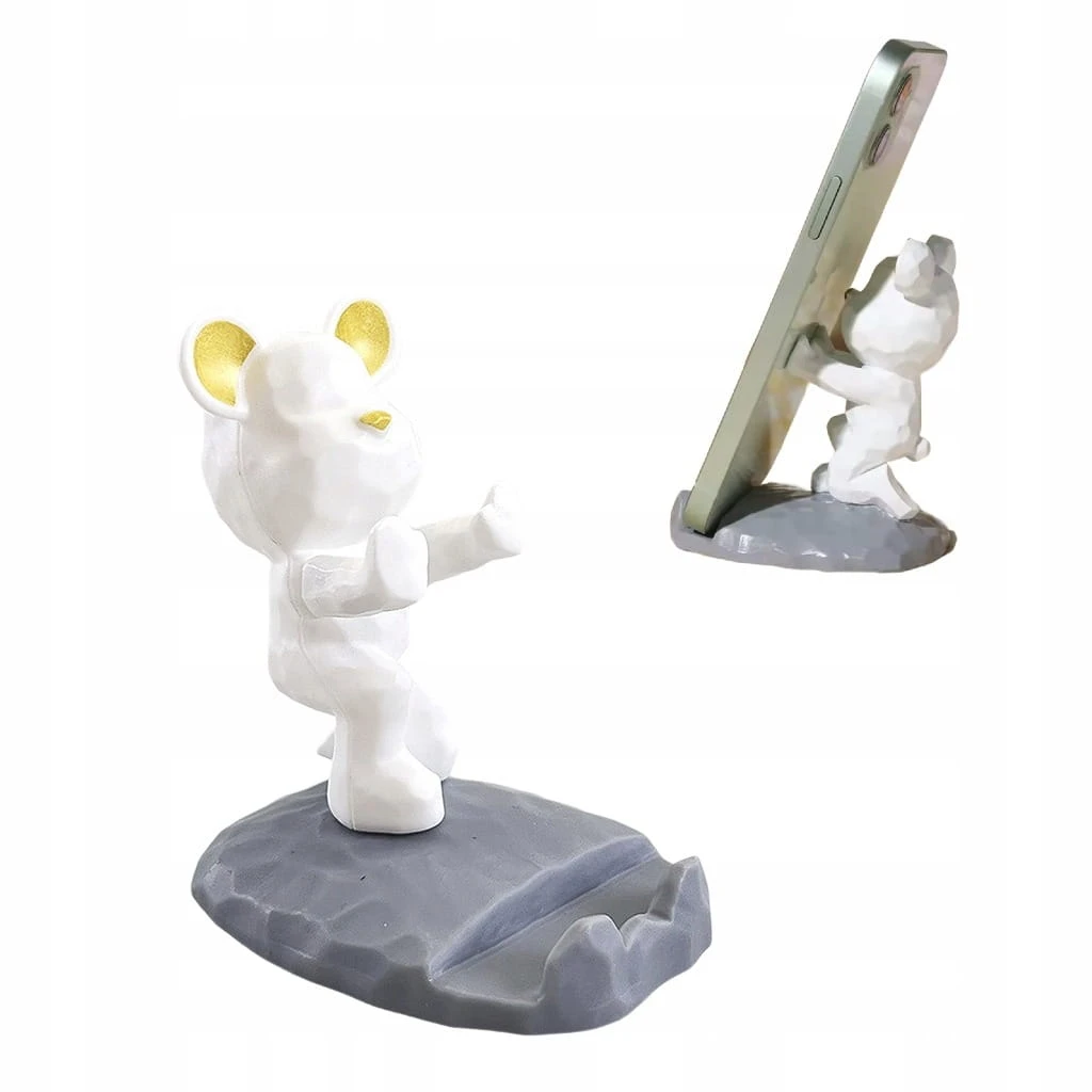 Ten kreatywny stojak na telefon w kształcie słodkiego misia pełni funkcję zarówno dekoracyjną, jak i praktyczną. Wykonany z tworzywa sztucznego, oferuje wyrazisty efekt trójwymiarowy oraz trwałość. Stabilna trójkątna konstrukcja z dużą podstawą zapewnia pewne oparcie bez ryzyka przechylania się.