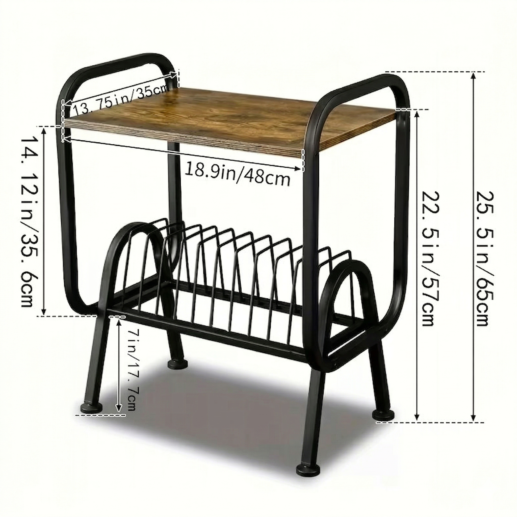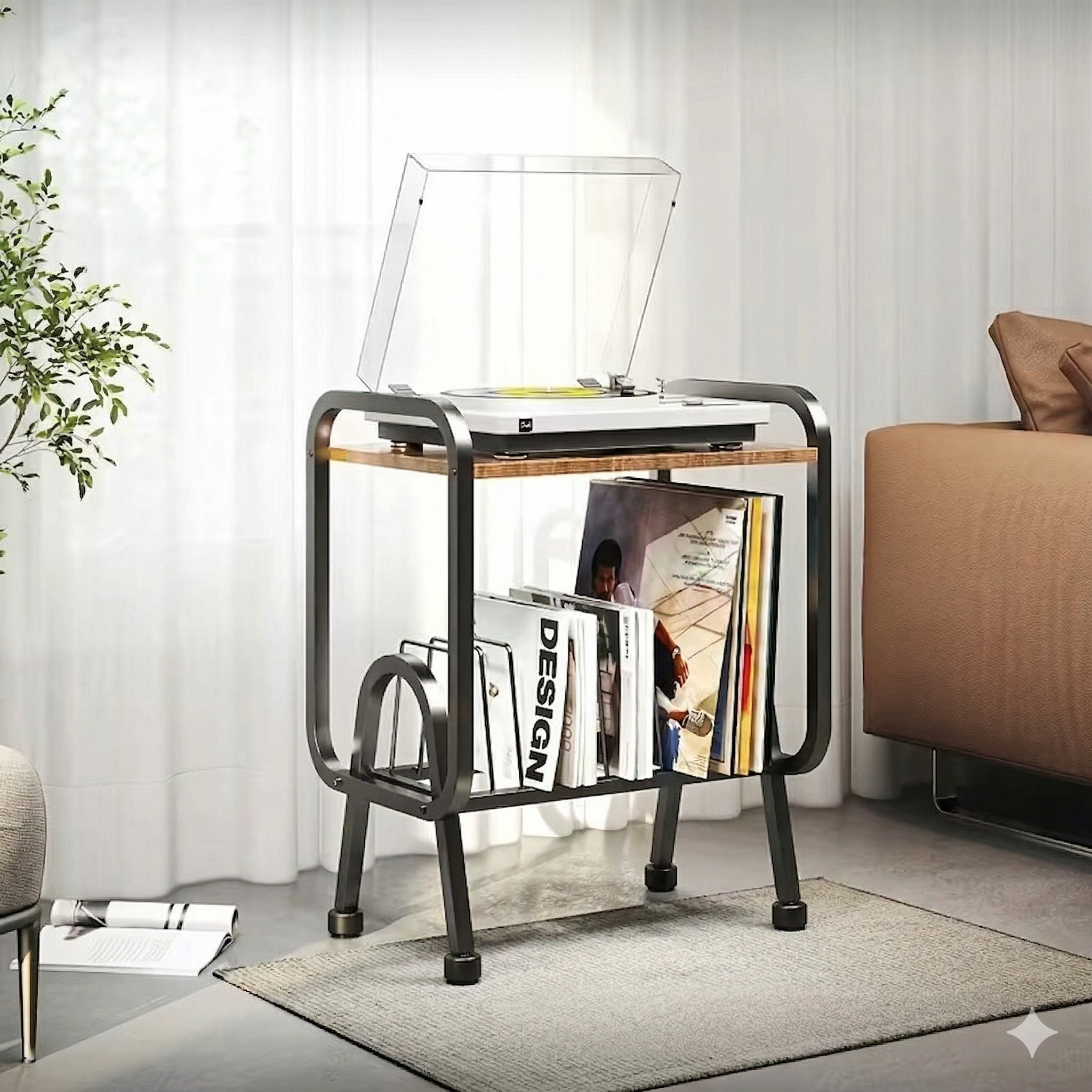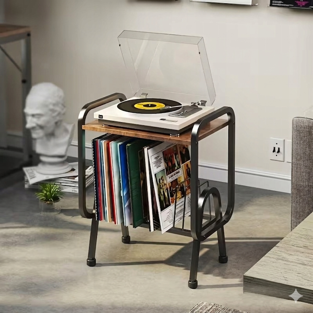 Stolik na Gramofon z Regałem na Płyty Winylowe, Książki, Gazety