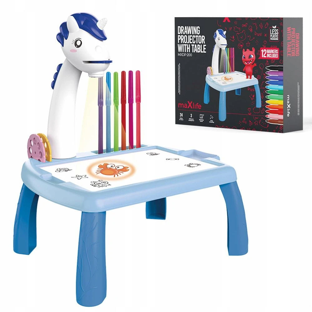Stolik z Rzutnikiem do Rysowania dla Dzieci - Tablica + Mazaki