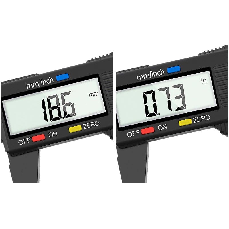 Suwmiarka umożliwia wykonywanie precyzyjnych pomiarów zarówno w milimetrach jak i calach. By zmienić jednostkę pomiaru wystarczy nacisnąć niebieski przycisk.