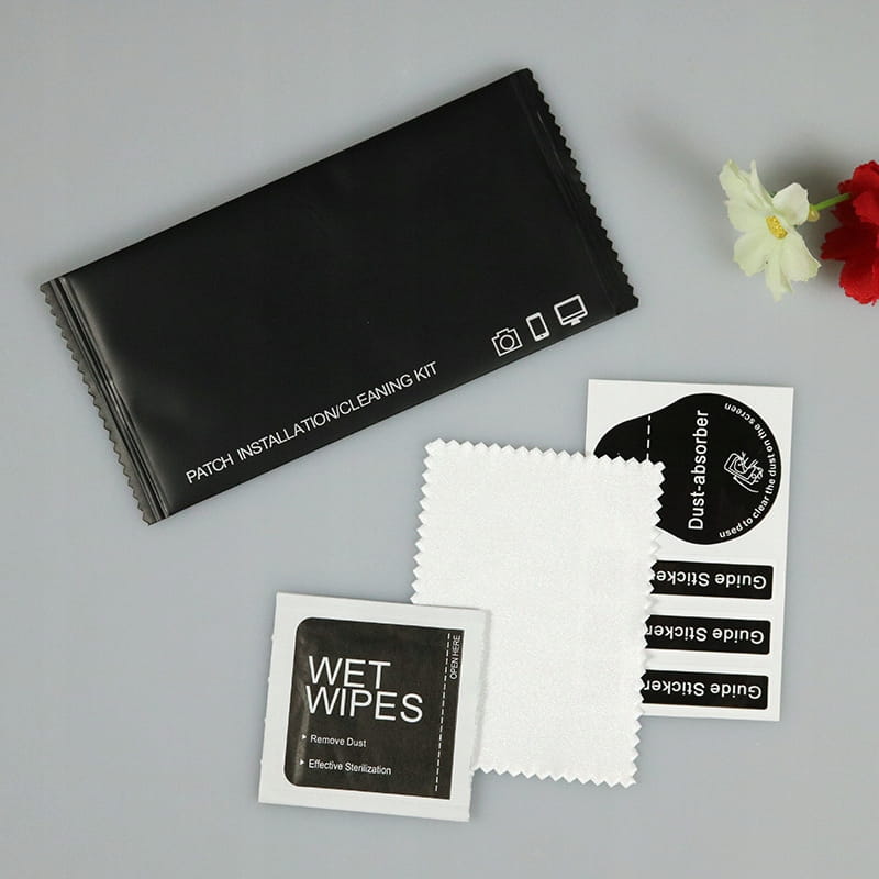 - Nasączona efektywnym środkiem czyszczącym, o wymiarach 7 cm x 5 cm, skutecznie usuwa tłuste ślady, kurz i inne zabrudzenia, przygotowując powierzchnię urządzenia do aplikacji szkła hartowanego.