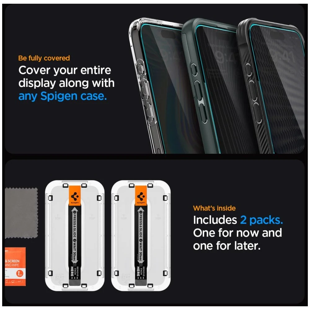 Szkło Hartowane Prywatyzujące Spigen Glass tR Do iPhone 15 2 Sztuki