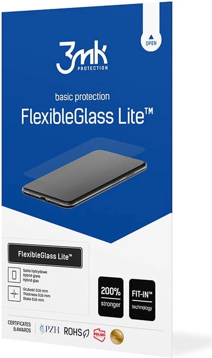 FlexibleGlass Lite™ to niepękające szkło hybrydowe, łączące elastyczność folii ochronnej i twardość tradycyjnego szkła. Stanowi delikatniejszą i tańszą alternatywę dla flagowego produktu 3mk – hybrydy FlexibleGlass™. Szkło hybrydowe nie pęka i trudniej je zarysować. Wzmacnia ekran smartfona amortyzując energię uderzenia. Jednocześnie jest praktycznie niewyczuwalne i niewidzialne. Ma zaledwie 0,16 mm grubości. FlexibleGlass Lite™ to obecnie najcieńsze szkło hybrydowe na rynku.