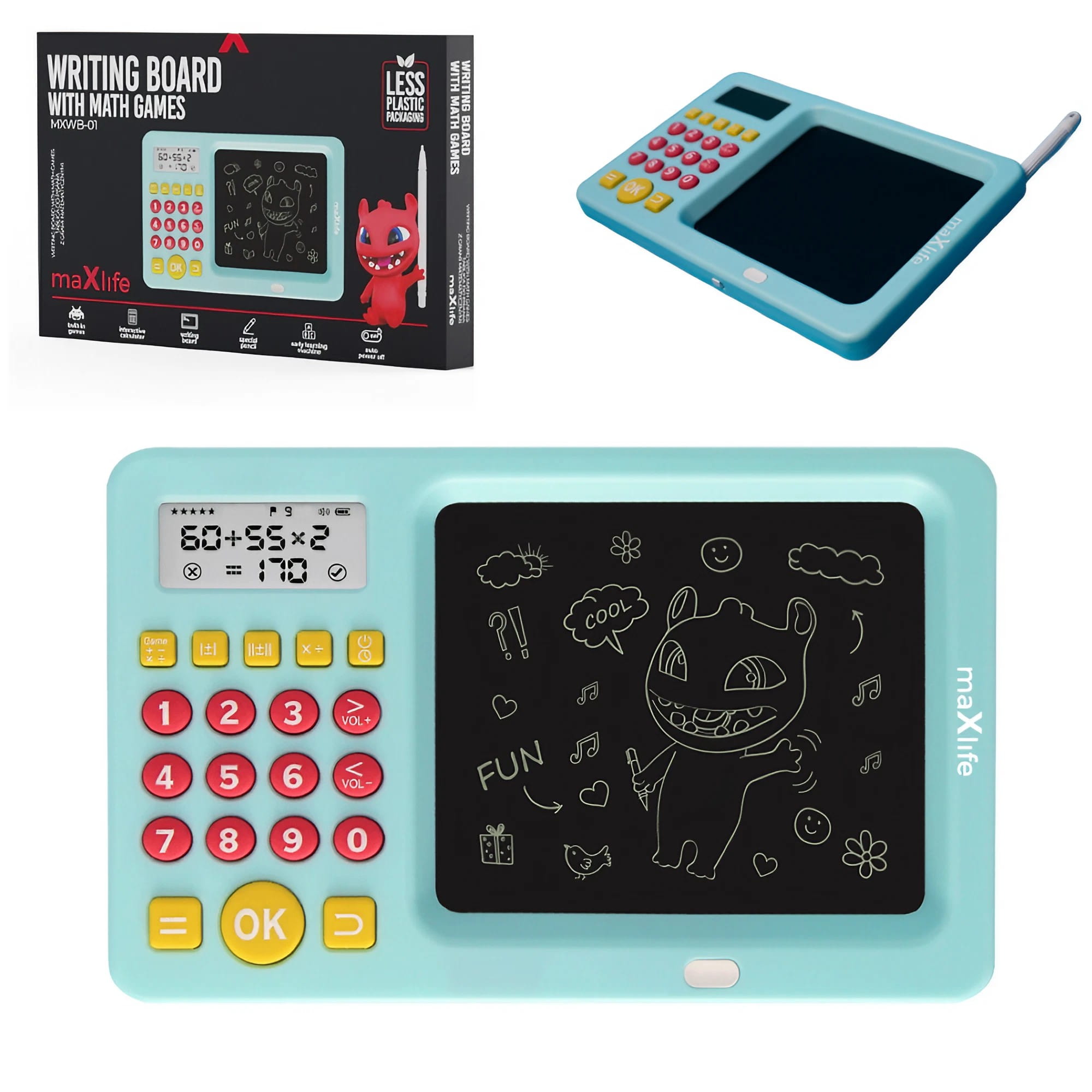 ✅ Maxlife MXWB-01 to narzędzie edukacyjne, które doskonale integruje naukę i zabawę. Zaprojektowana z myślą o dzieciach, umożliwia skuteczne utrwalanie i wzmacnianie wiedzy poprzez interaktywną rozrywkę. Zestaw ten łączy w sobie dwie istotne cechy: kalkulator edukacyjny oraz tablet do pisania, rysowania i notowania. To umożliwia dziecku łączenie nauki matematyki z wyrażaniem siebie w kreatywny sposób.