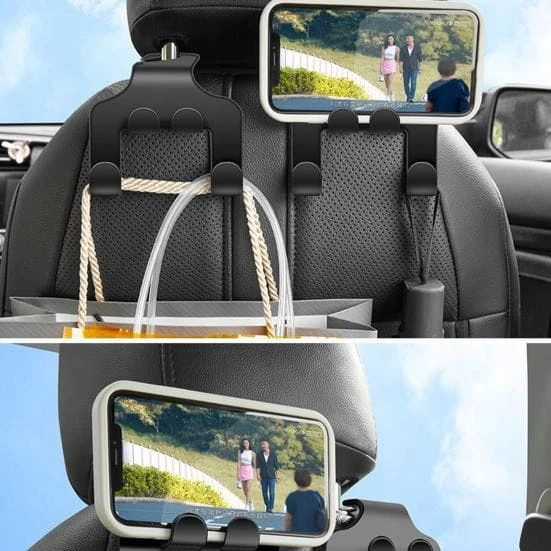Dodatkową zaletą tego wieszaka jest możliwość pełnienia funkcji uchwytu na telefon, co pozwala na komfortowe korzystanie z urządzenia podczas jazdy, np. jako nawigacji.