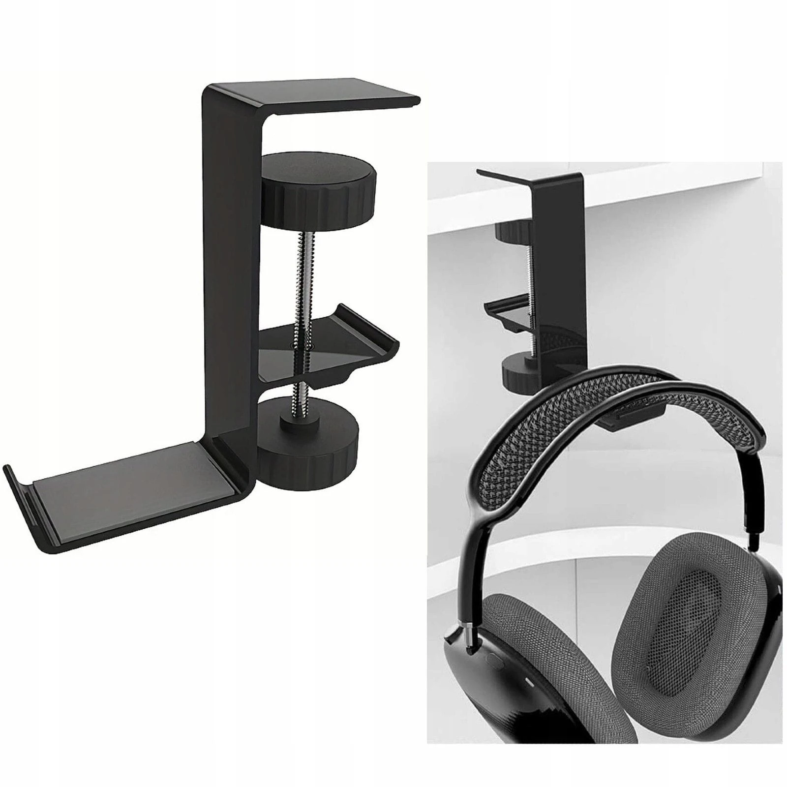Metalowy Uchwyt na Słuchawki Przykręcany do Biurka - Czarny